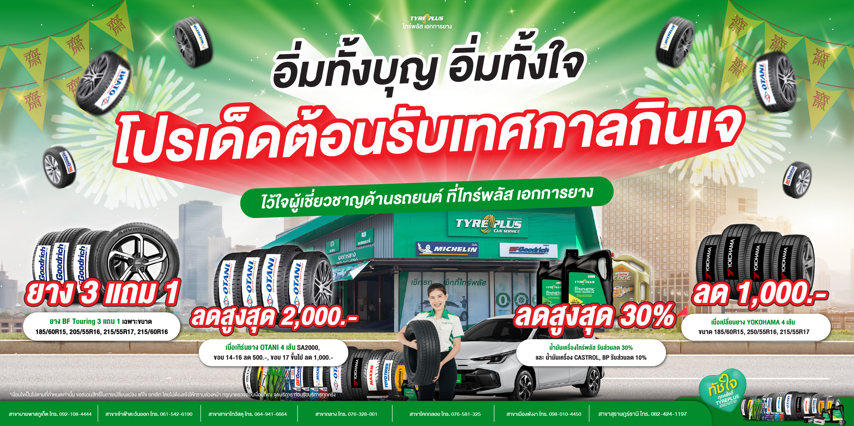 - ไอแคร์ พลัส (iCare Plus) : เมื่อเปลี่ยนยางมิชลิน หรือ บีเอฟกู๊ดริช รุ่นใดก็ได้ 4 เส้น และซื้อแพคเกจประกันยางเพิ่ม มูลค่า 250 บาท ณ วันที่เปลี่ยนยางใหม่ พร้อมแอดไลน์ @tyreplus และลงทะเบียน